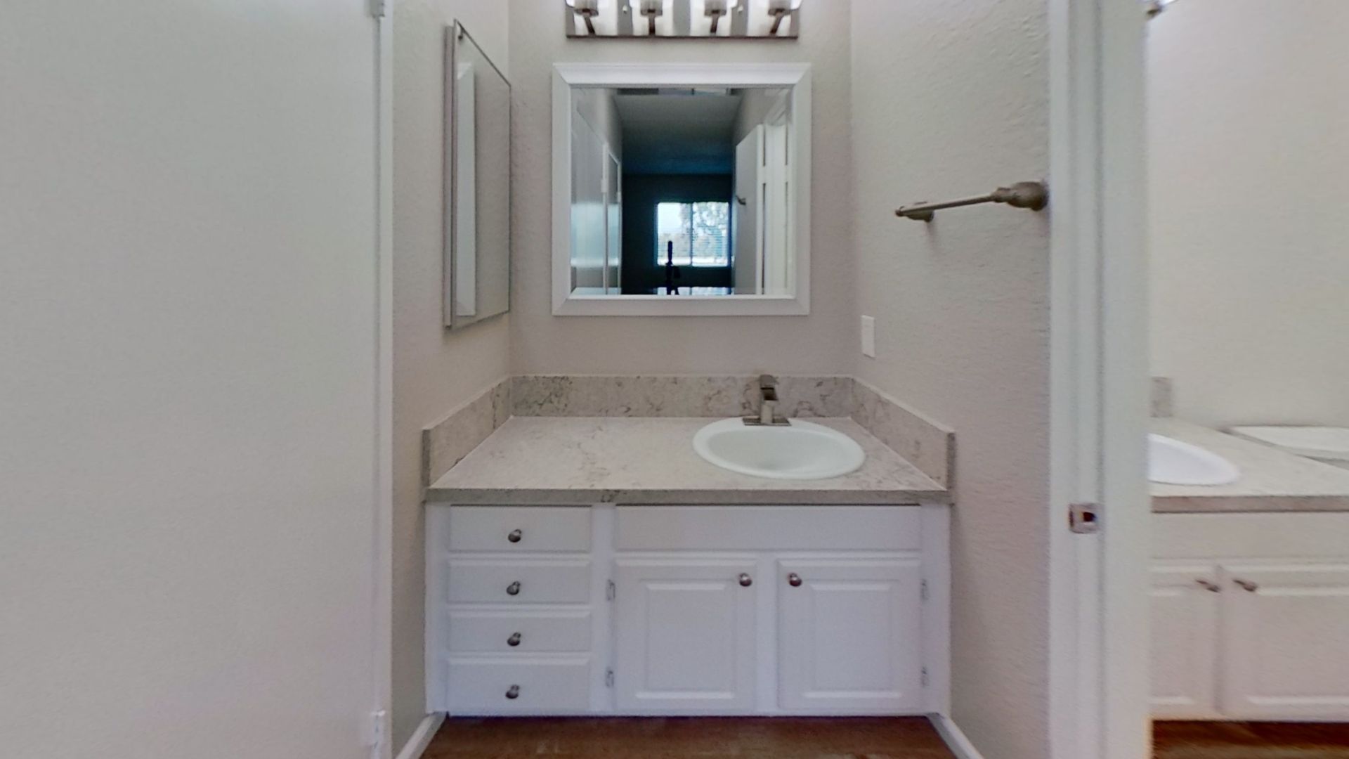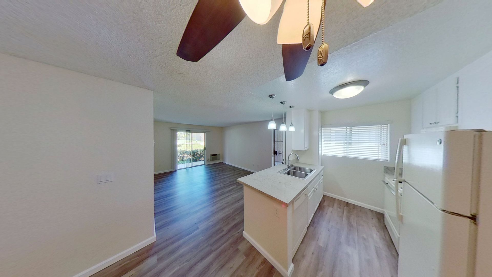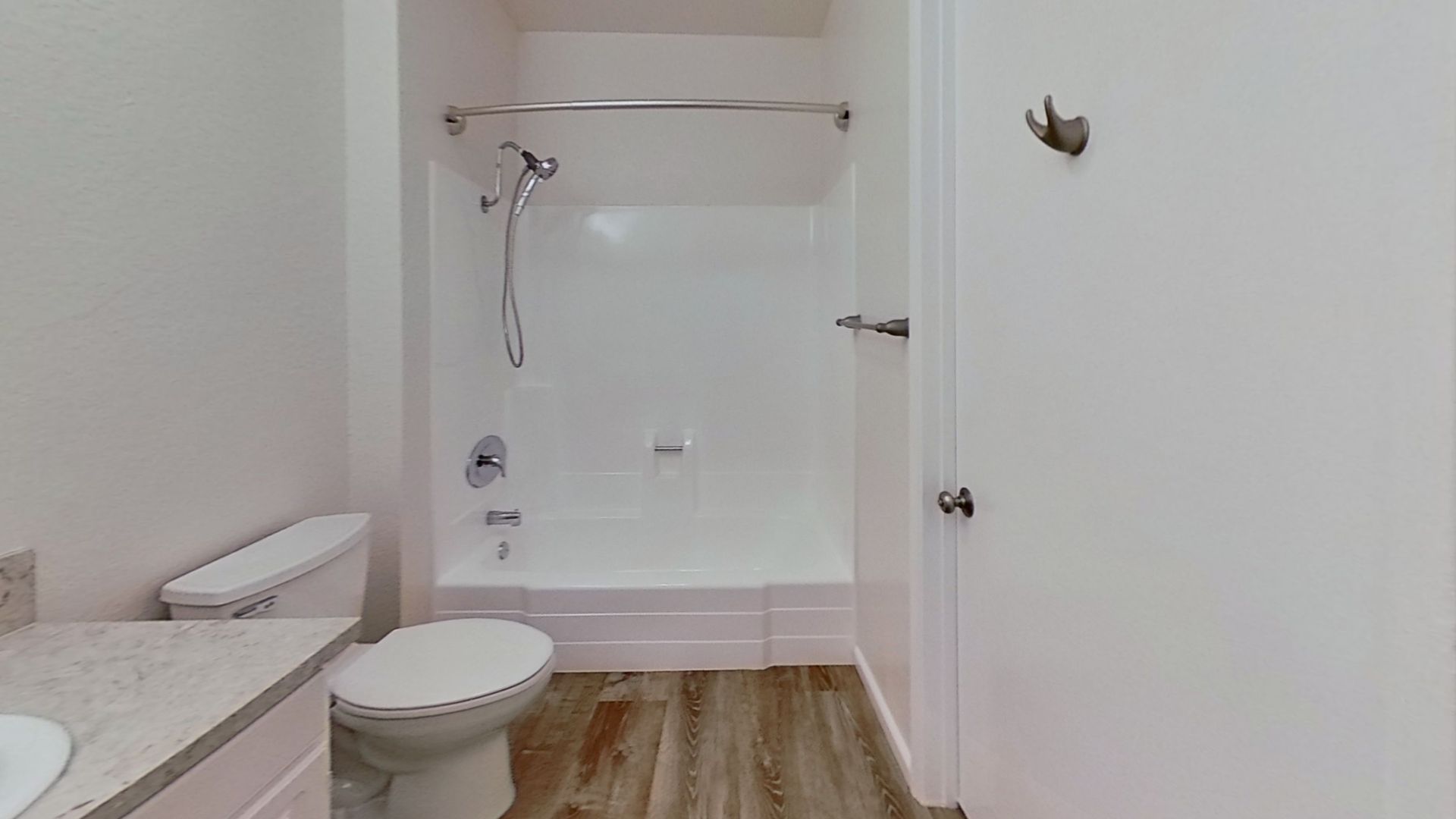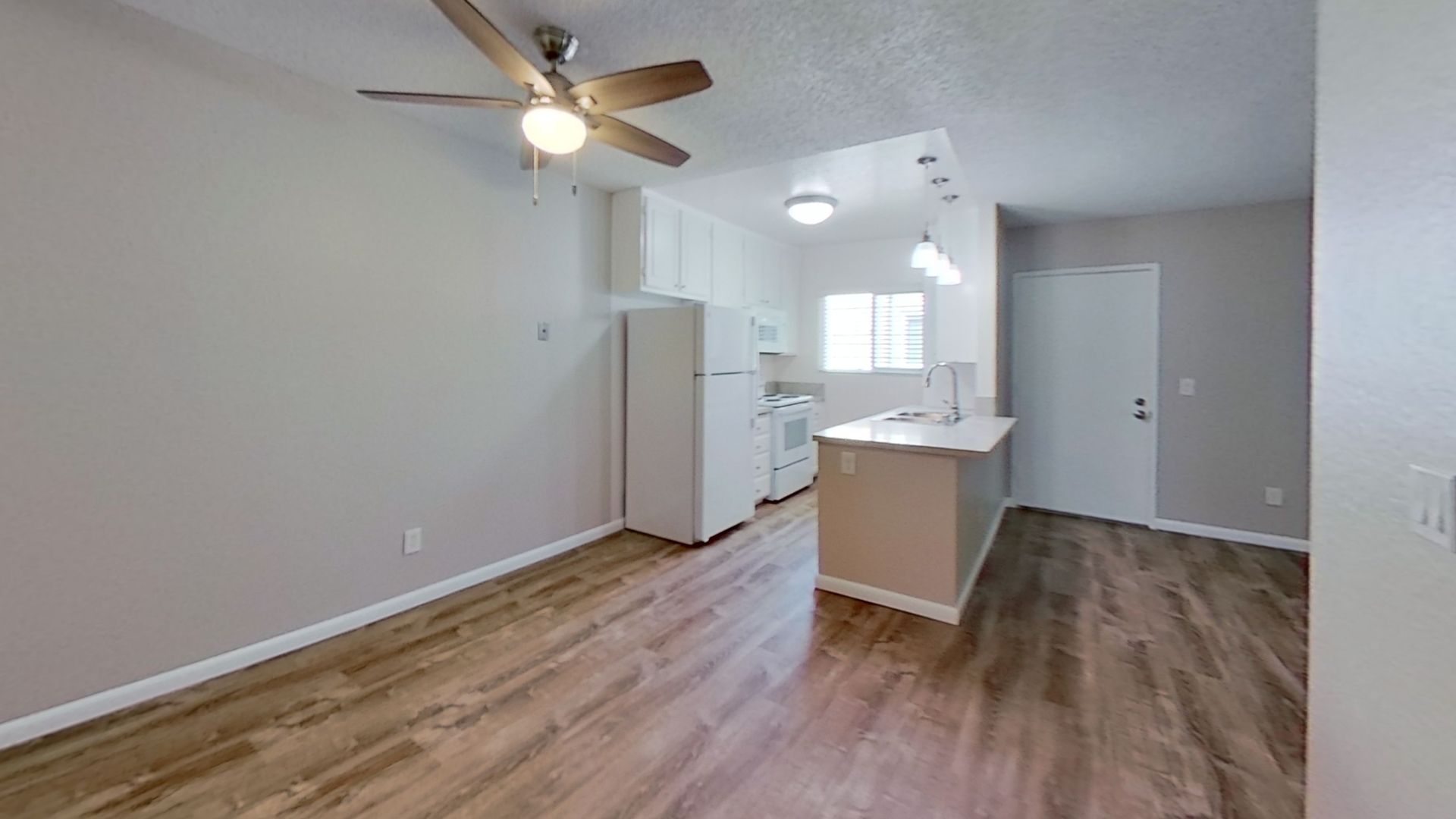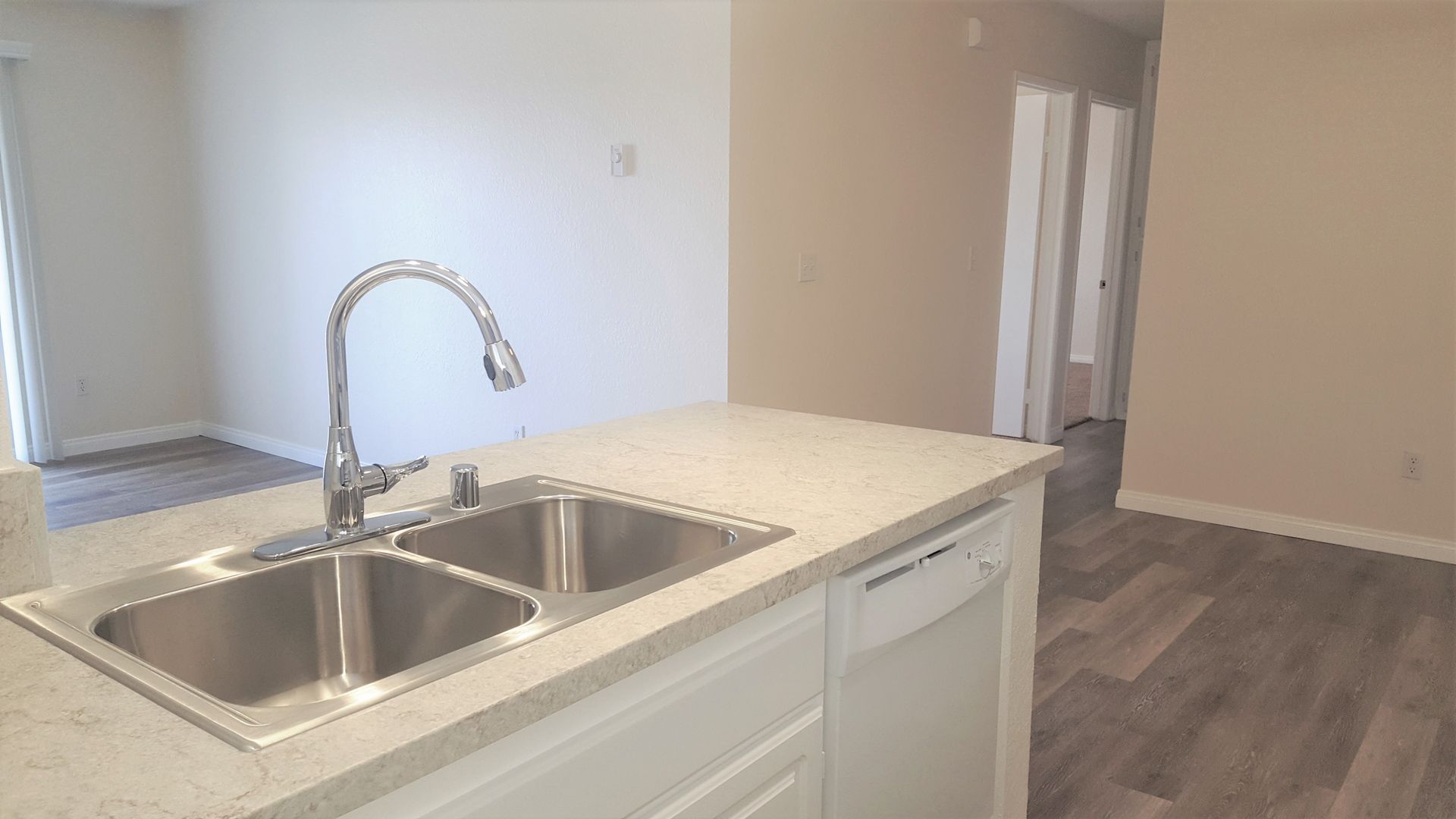 Plank flooring and Granite countertops.